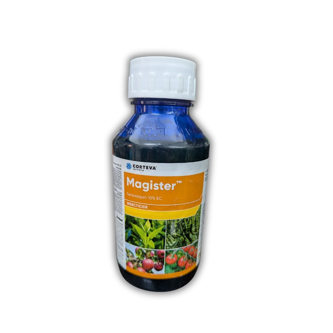 Magister® 10% EC is a highly effective insecticide (acaricide/miticide) based on an active ingredient Fenazaquin for effective control of insect pests. Excellent miticide with unique ovicidal activity Magister exhibits true ovicidal activity, preventing hatching of tea pests and gives superior residual control for a longer period. It is also relatively safe for beneficial / predatory mites such as Phystoseiulus spp, amplyeius spp which help in the reduction of mite population. Crops: Apple, Brinjal, Okra, Pepper, Tea, Tomato Target Pests: Acaphylla theae, Oligonychus coffeae, Brevipalpus californicus, Polyphagotersonemus latus, Calacarus Carinatus, Tetranychus urticae Dose: Tea: 1000-1250 ml in 400 - 600 litres of water. Apple: 400 ml in 1000 litres of water. Okra, Brinjal, Tomato and Chilli: 1250 ml in 500 litres of water. Pack Sizes: 100 ml, 250 ml, 500 ml, 1 liter The information provided here is for reference only. Always refer to the product labels and accompanying leaflets for complete product details and directions for use.