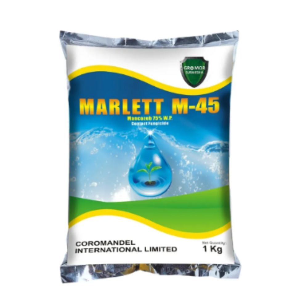 Coromandel Marlett M 45 (Mancozeb 75% WP) is a broad-spectrum, contact fungicide belonging to the Dithiocarbamate group. It effectively controls a wide range of fungal diseases by inhibiting fungal enzyme activity, ultimately leading to the death of the fungus. Its versatility in application and environmental safety make it a key tool in Integrated Disease Management.